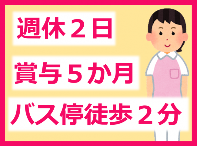 残業少なめ/賞与5カ月/週休2日制/医療費補助制度あり/最寄りのバス停から徒歩2分でアクセス便利