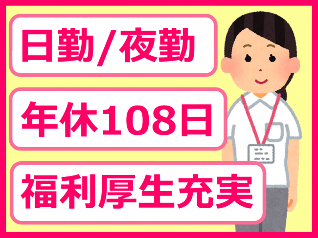 | 休日・休暇 | ・完全週休二日制 ・ローテーションによる ・月9日休み ・年間休日数:108日 ・6か月経過後の年次有給休暇10日 |