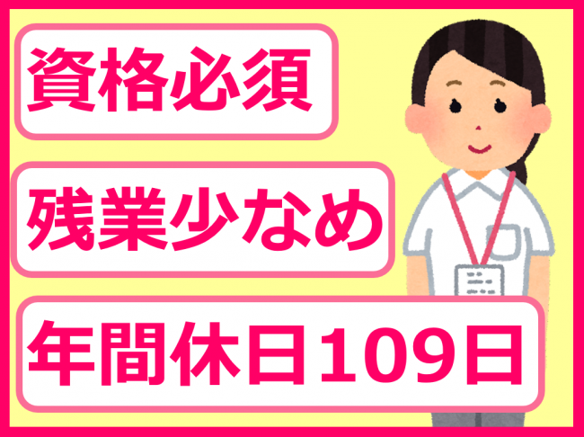 | 休日・休暇 | ・シフト制(4週8休) ・年間休日109日 ・6か月経過後の年次有給休暇10日 |