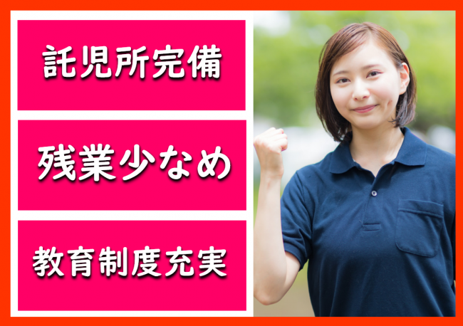 託児所完備/残業少なめ/資格や経験を生かせます/子育て中のスタッフ多数活躍中/昇給賞与あり