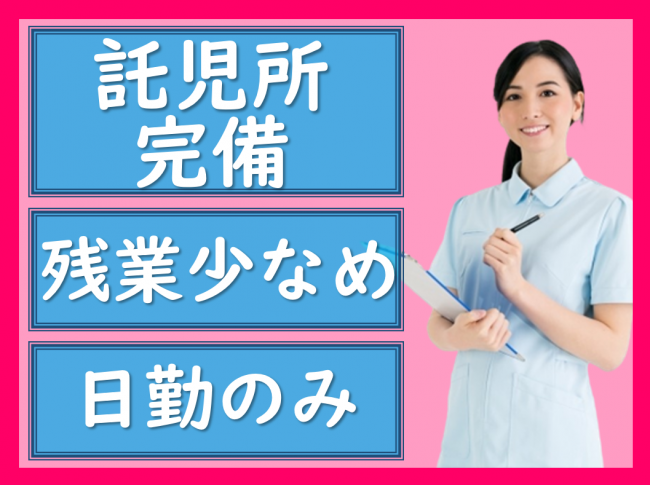 託児所完備(毎日運営)/残業少なめ/日勤のみ/寮・社宅あり/子育て中のスタッフ活躍中!
