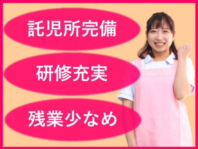 託児所完備/学校休日等の学童保育利用可/スタッフの子育てを支援/残業少なめ/車通勤OK