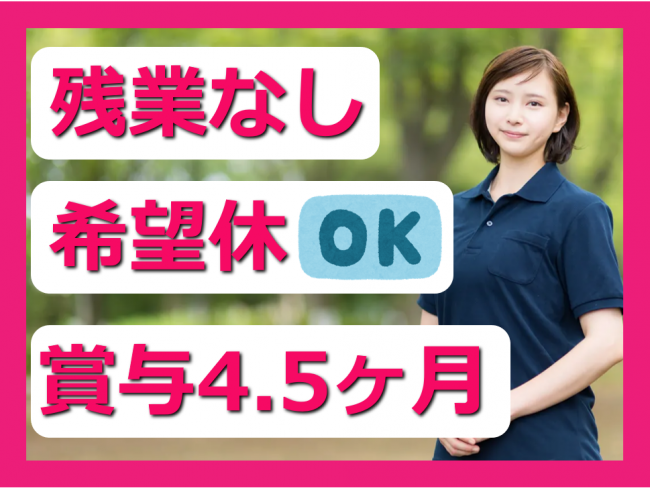 残業なし/車通勤OK/ブランクOK/賞与4.5ヶ月/定員18名の小規模施設で落ち着いて働けます