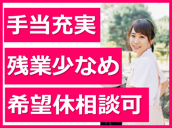 残業少なめ(月平均3時間)/希望休相談可能/家族手当等充実しています/車通勤OK