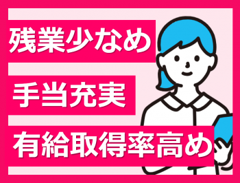 | 勤務時間 | ①7:00~16:00 ②8:30~17:30 ③11:00~20:00 ④16:00~9:00 ※①~④のシフト勤務 ※休憩時間:60分 ※時間外労働時間:なし ※年間休日数:110日 |