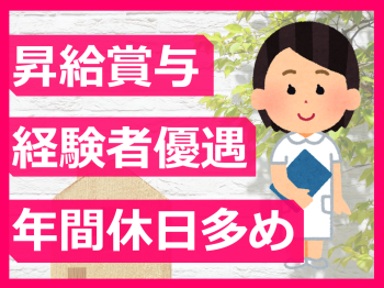 | 求める人材 | 〇学歴 ・専修学校以上 〇必要な経験・スキル ・実務経験2~3年:必須 〇必要な免許・資格 ・看護師:必須 ・普通自動車運転免許:必須(AT限定可) |