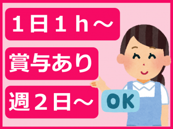 | 勤務時間 | 8:00~17:00 ※休憩時間:60分 ※時間外労働時間:なし ※週所定労働日数:週3日~週4日 |