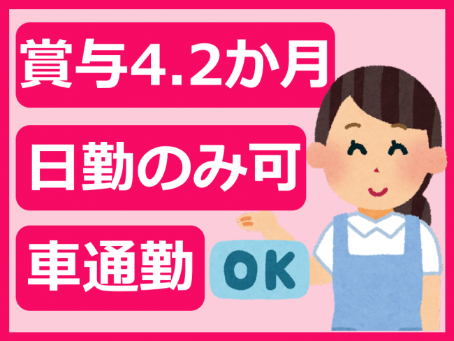賞与年3回(4.2か月)/夜勤なしも相談OK/残業少なめ/車通勤OK