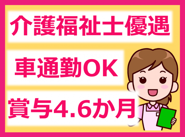 介護の資格や経験を生かせます/ブランクOK/昇給あり/賞与4.6か月/車通勤OK/月9~10日休