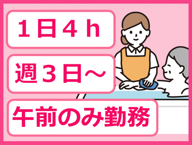 介護福祉士歓迎/午前のみの仕事/勤務日数相談可/日曜固定休/働きやすい職場づくりに取り組んでます