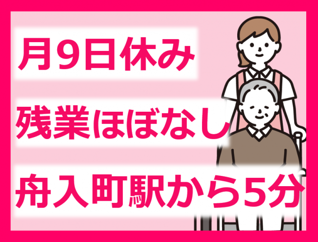 初任者研修以上必須/経験者歓迎/残業少なめ/月9日休/昇給賞与あり/駅から徒歩5分で便利