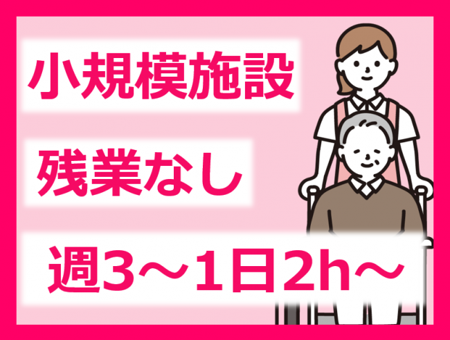 週3日~1日2時間~/経験不問/朝のみ夕方のみ等相談可/残業なし/小規模施設/マイカー通勤可