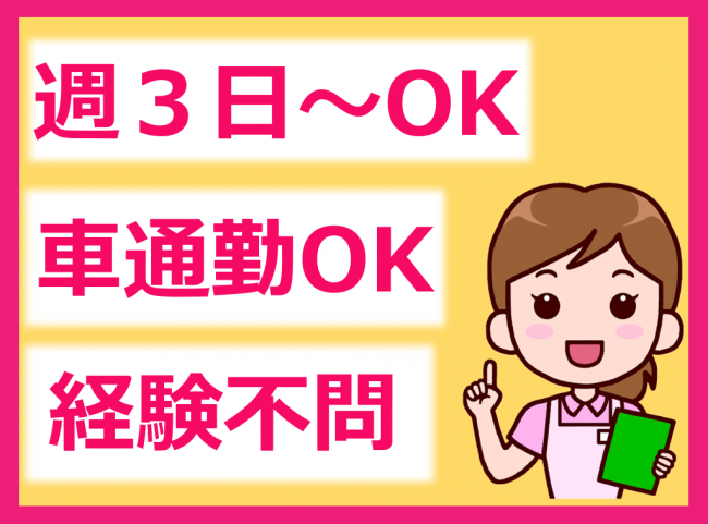 週3日~/フルタイム/残業なし/昇給あり/車通勤OK/夜勤業務希望の方は正社員と同様の手当あり!