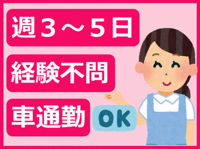 週3日~OK/フルタイム/残業なし/昇給あり!頑張りをしっかり評価/シフト応相談/車通勤OK