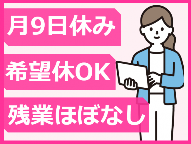 経験者歓迎/希望休取れる/月9日休み/残業ほぼなし/昇給賞与/マイカー通勤OK