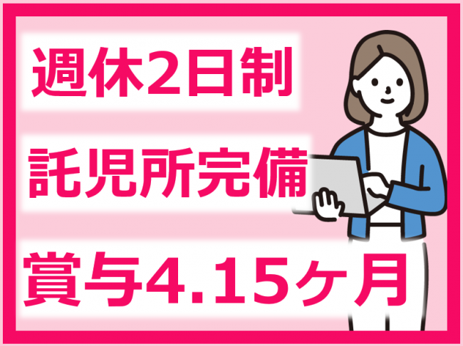 託児所完備!0歳~小学3年生まで/完全週休2日制/賞与4.15ヶ月/月9日休み/残業ほぼなし