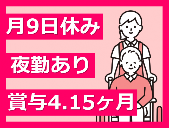 賞与4.15ヶ月/月9日休み/残業ほぼなし/手当充実/職場環境良好/経験があれば未資格OK