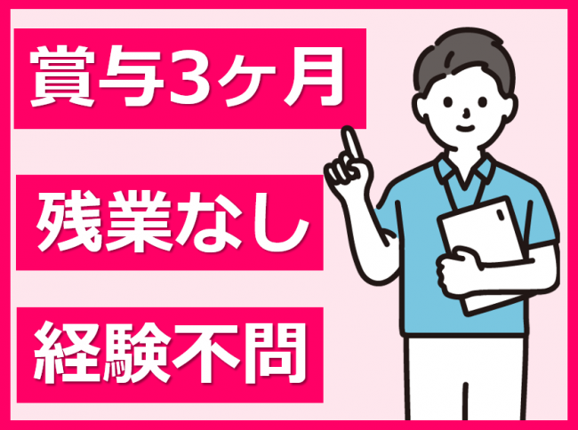 経験不問/夜勤できる方歓迎/残業なし/賞与3カ月/昇給あり/研修充実/緑豊かな環境の職場です