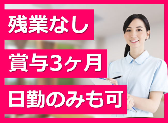 日勤のみもOK/残業なし/賞与3カ月/車通勤可/職員の心身の健康管理にも配慮!笑顔が絶えない職場
