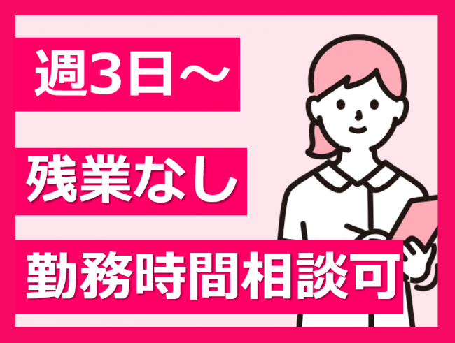 週3日~1日4時間~又はフルタイムもOK/残業なし/昇給あり/育休取得実績あり/勤務時間相談OK