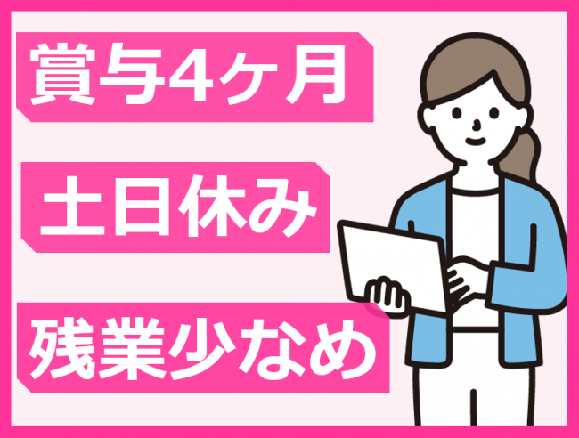 土日休み/完全週休2日制/賞与4カ月/残業少なめ/昇給あり!住宅手当あり/有休の日数多め!