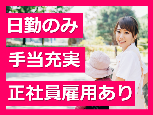 初任者研修以上の方歓迎/残業少なめ!勤務後の予定も立てやすい/住宅手当など手当充実/社員登用あり