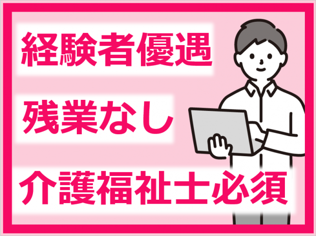 | 求める人材 | 〇学歴 ・不問 〇必要な経験・スキル ・管理者業務経験者優遇 ・ワード、エクセルの基本操作 〇必要な免許・資格 ・介護福祉士:必須 ・普通自動車運転免許:あれば尚可(AT限定可) |