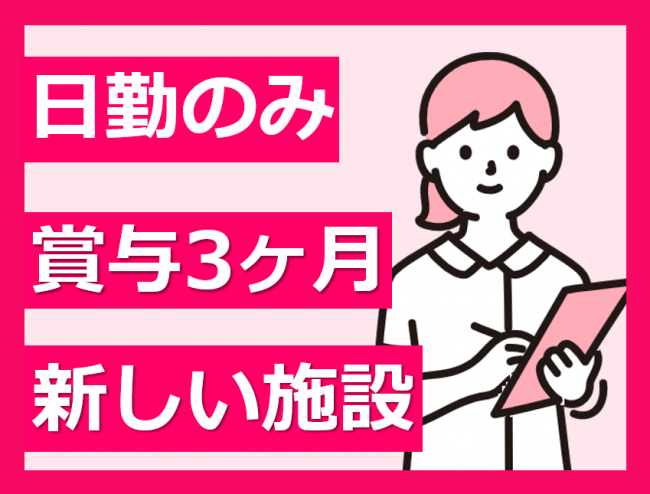 新しい施設!経験者優遇/日勤のみ/残業少なめ/賞与3カ月/車通勤OK