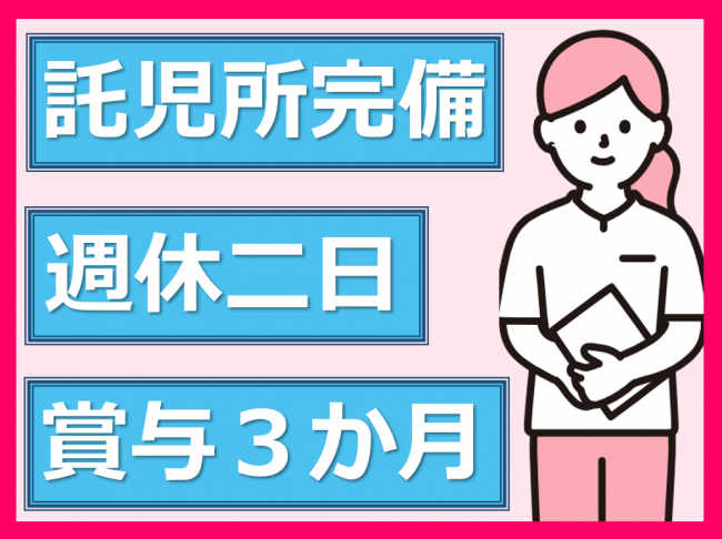 託児所完備!スタッフの子育てを支援/賞与3カ月/完全週休2日制/最寄りのバス停から徒歩2分
