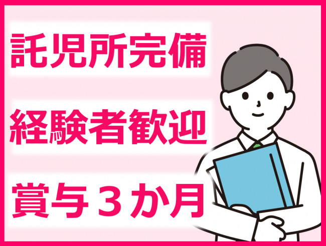 託児所完備!子育て中も安心/無資格応募OK/管理者経験ある方歓迎/残業少なめ/賞与3カ月/日曜休