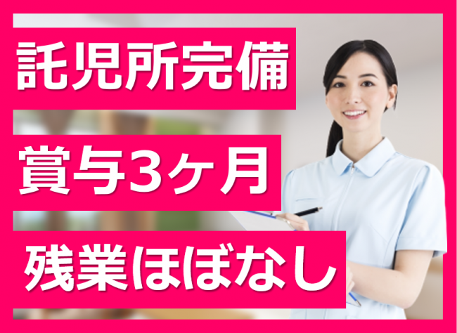 託児所完備/残業月1時間/賞与3カ月/福利厚生充実/学校行事などにも配慮/夜勤も可