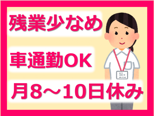 | 休日・休暇 | ・その他 ・完全週休二日制 ・月8~10日の休み ・シフト制のお仕事です ・年間休日110日 ・6か月経過後の年次有給休暇10日 |
