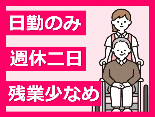 介護経験者募集/残業少なめ/昇給・賞与あり/完全週休2日制/希望休相談OK/車通勤OK