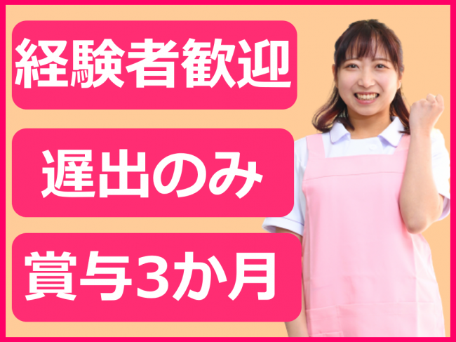 初任者研修以上の方、介護経験者歓迎/残業ほぼなし/月9日休み/賞与3カ月/10時勤務開始のお仕事