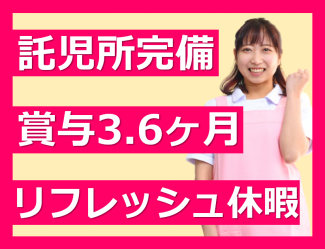 託児所完備!賞与3.6ヶ月/残業少なめ/リフレッシュ休暇あり/家族手当あり/院内保育