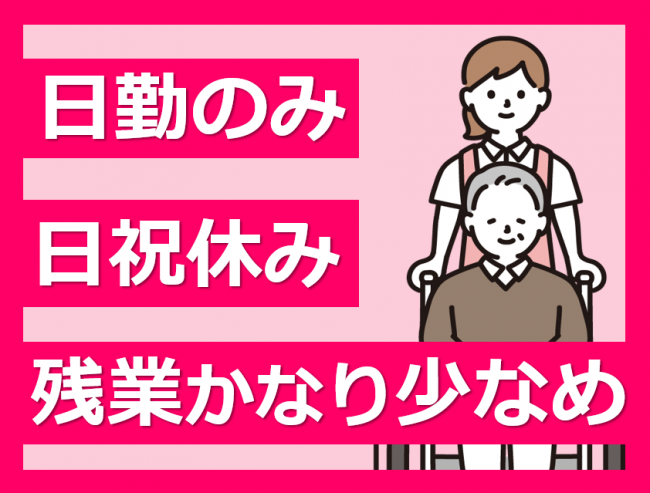 初任者研修以上の方歓迎/残業少なめ/日・祝日固定休/水曜午後休み/年末年始・盆・GWお休み!