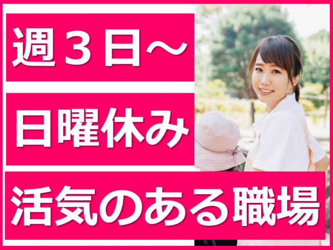 週3日~/未経験可/フルタイム/日曜休/昇給賞与あり!頑張りをしっかり評価/勤務時間・日数相談可