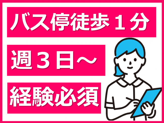 週3日~、1日6時間/日・祝日固定休/昇給賞与あり/勤務時間相談OK/最寄りのバス停から徒歩1分