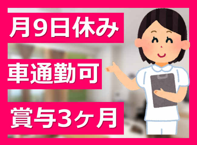| 休日・休暇 | ・日、その他 ・月9日休み(2月のみ8日) ・4週8休制 ・特別休暇4日間あり ・年間休日107日 ・6か月経過後の年次有給休暇10日 |