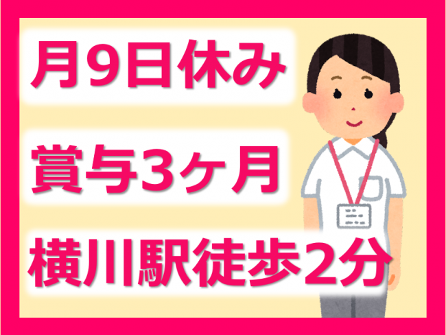 経験不問/月9日休み/賞与3カ月/特別休暇4日あり/JR横川駅から徒歩2分で通勤便利