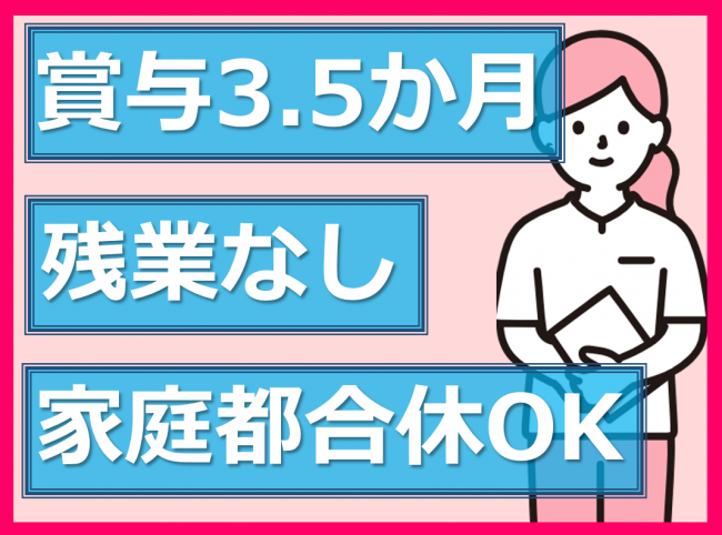 初任者研修修了者又は実務経験者歓迎/残業なし/賞与3.5カ月/家庭都合休OK!子育て世代も安心!
