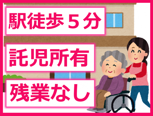 託児所完備/介護福祉士募集/残業なし!メリハリをつけて働ける/賞与3.5カ月/駅から徒歩5分