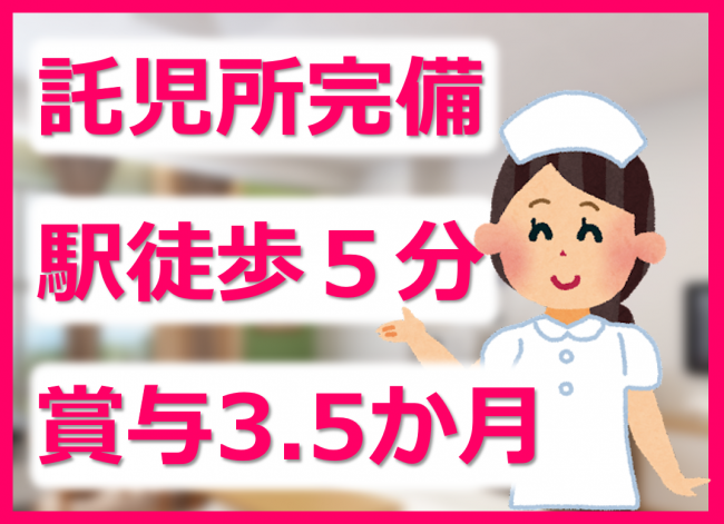 託児所完備!子育て世代も安心/未経験でも応募可/残業なし/賞与3.5カ月/寮あり/駅から徒歩5分