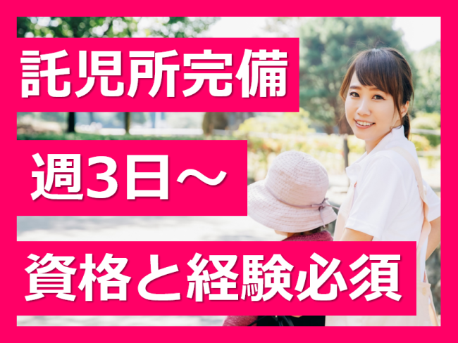 託児所完備/2年以上の経験必須/週3日~/日曜固定休み/昇給賞与あり