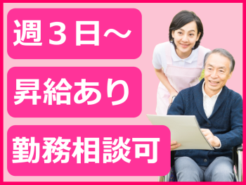 週3日、1日3時間程度/2年以上の介護経験がある方/昇給あり/子育て支援求人です