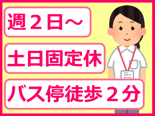 介護の有資格者優遇/経験不問/土日固定休/昇給あり/勤務日数・時間相談OK/バス停から徒歩2分