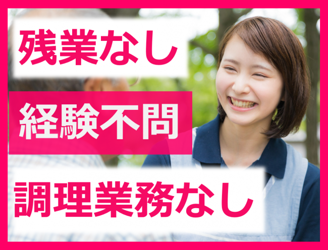 経験不問/残業なし/月9日休み/勤務時間・日数など柔軟に対応/調理業務なし/正社員登用あり