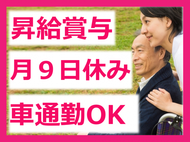 初任者研修以上募集/月9日休み/昇給賞与あり!モチベーションUP/資格取得支援あり/車通勤OK