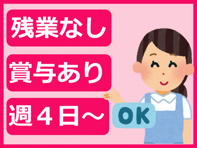 ・勤務は週4日からでOK!残業なし!日勤のみ(夜勤なし)!