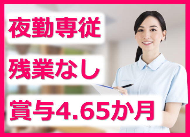 残業なし/年間休日126日/賞与4.65カ月/最初の1カ月は日勤からスタート!夜勤未経験でも安心